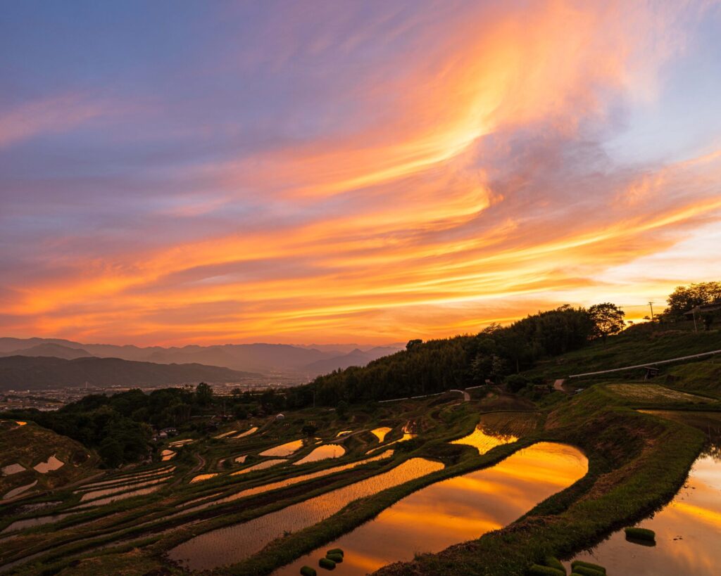 Sunset sky and rice terraces of INAKURA